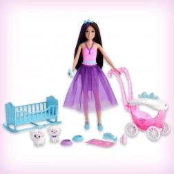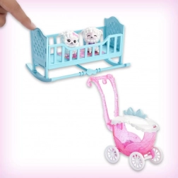 Il set di gioco comprende due piccoli agnelli, che i bambini possono nutrire e prendersi cura di loro, oltre a una carrozzina ispirata a un carro reale, che sicuramente incanterà ogni piccolo principe o principessa. Altri accessori includono una culla a dondolo e altri elementi essenziali per una perfetta cura degli agnelli.