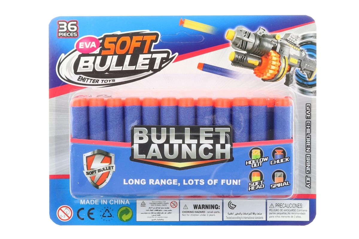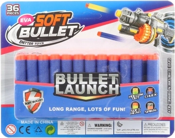 Set di dardi di ricambio in gommapiuma con punta morbida, ideale per un gioco sicuro e divertente. La confezione include 36 pezzi di frecce standard di dimensioni 7 × 1,3 cm, compatibili con la maggior parte dei blaster comuni. La punta morbida garantisce un impatto più sicuro e una lunga durata anche con uso frequente. Consigliato per bambini dai 8 anni.