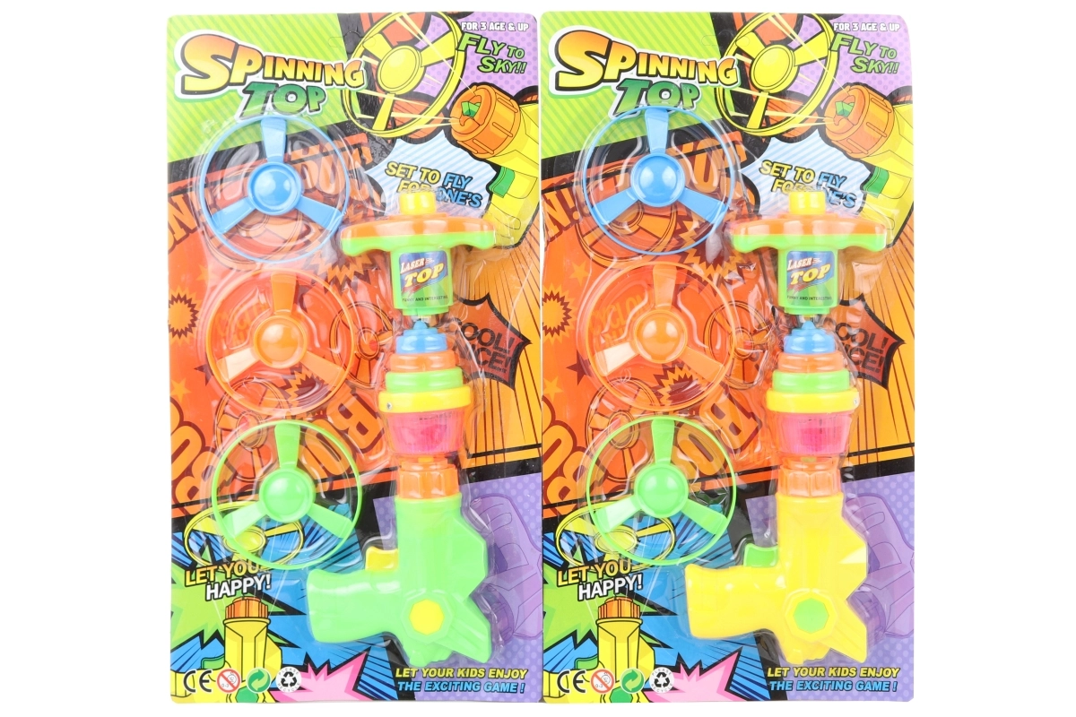 - Set completo: pistola, 3 eliche e trottola colorata