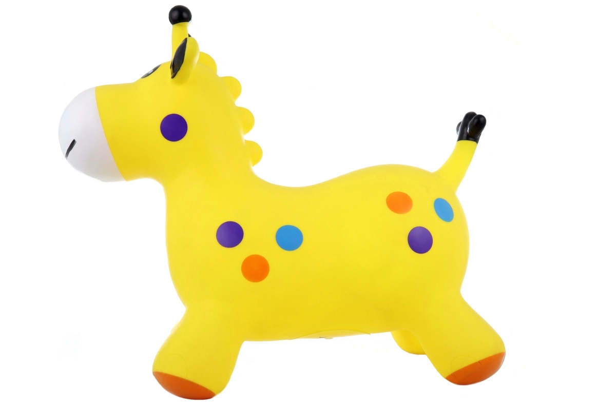 La simpatica giraffa gialla con pois colorati invoglia al movimento e trasforma ogni salto in un gioco gioioso.