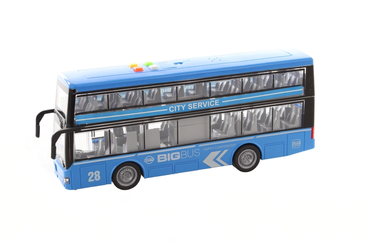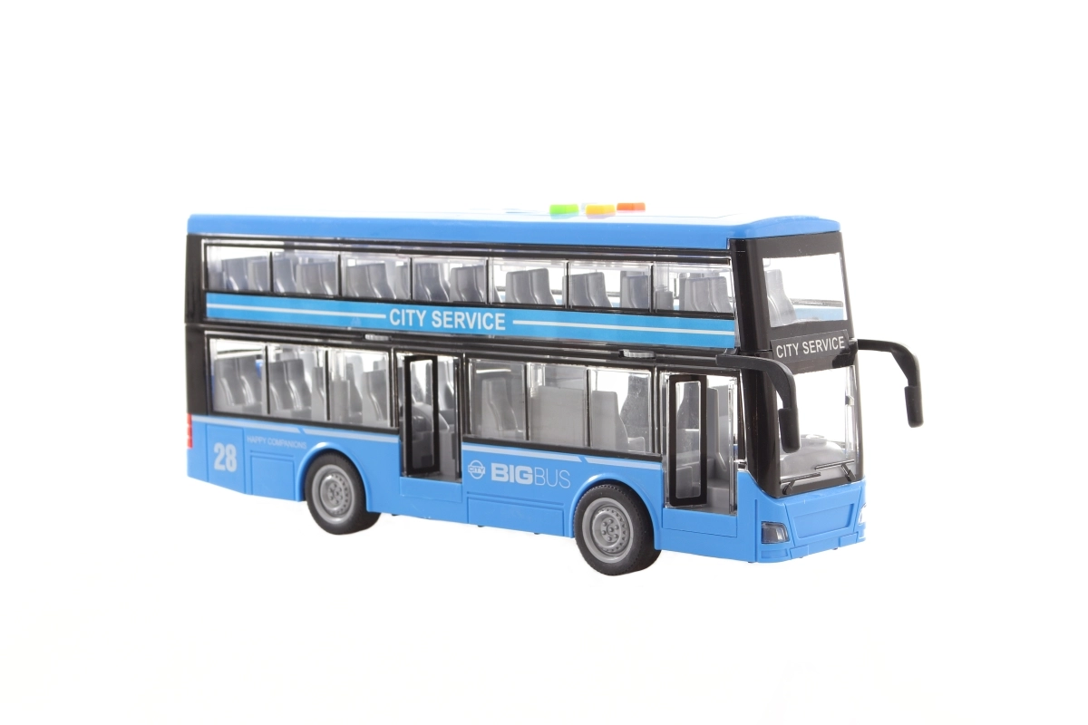 Questo autobus blu a due piani a batteria conquisterà tutti i piccoli appassionati di veicoli. Grazie ai suoni realistici rende il gioco più divertente e stimola la fantasia. La robusta struttura in plastica è ideale per l’uso quotidiano.