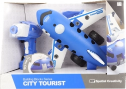 L’aereo nei colori blu e bianco è realizzato in plastica resistente e presenta dettagli realistici come finestrini, carrello e ali. La confezione include un cacciavite e un trapano per bambini che servono sia per il montaggio sia come modulo motore. Il modello assemblato misura circa 26 × 25 × 14 cm, dimensioni perfette per le mani dei bambini.