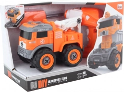 Divertente set di costruzione e giocattolo RC in uno! Questo carro attrezzi avvitabile può essere facilmente smontato e rimontato con il cacciavite o il trapano inclusi, inoltre puoi trasformarlo in un robot. Il motorino estraibile dal trapano si inserisce nell’auto, che poi va a radiocomando avanti e indietro. Il giocattolo si illumina e emette suoni, favorisce la motricità fine e la creatività dei bambini. Ideale per bambini dai 3 anni.