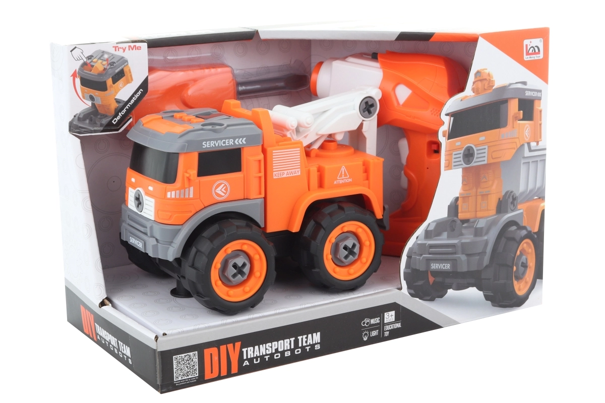 Questo carro attrezzi avvitabile interattivo è una scelta perfetta per i piccoli tuttofare. I bambini assemblano l’auto da soli con il cacciavite o il trapano, dal quale si può estrarre il motorino e inserirlo nell’auto. Successivamente possono controllarne la guida avanti e indietro con il radiocomando. L’auto può anche essere facilmente trasformata in un robot, prolungando il divertimento e stimolando la fantasia.