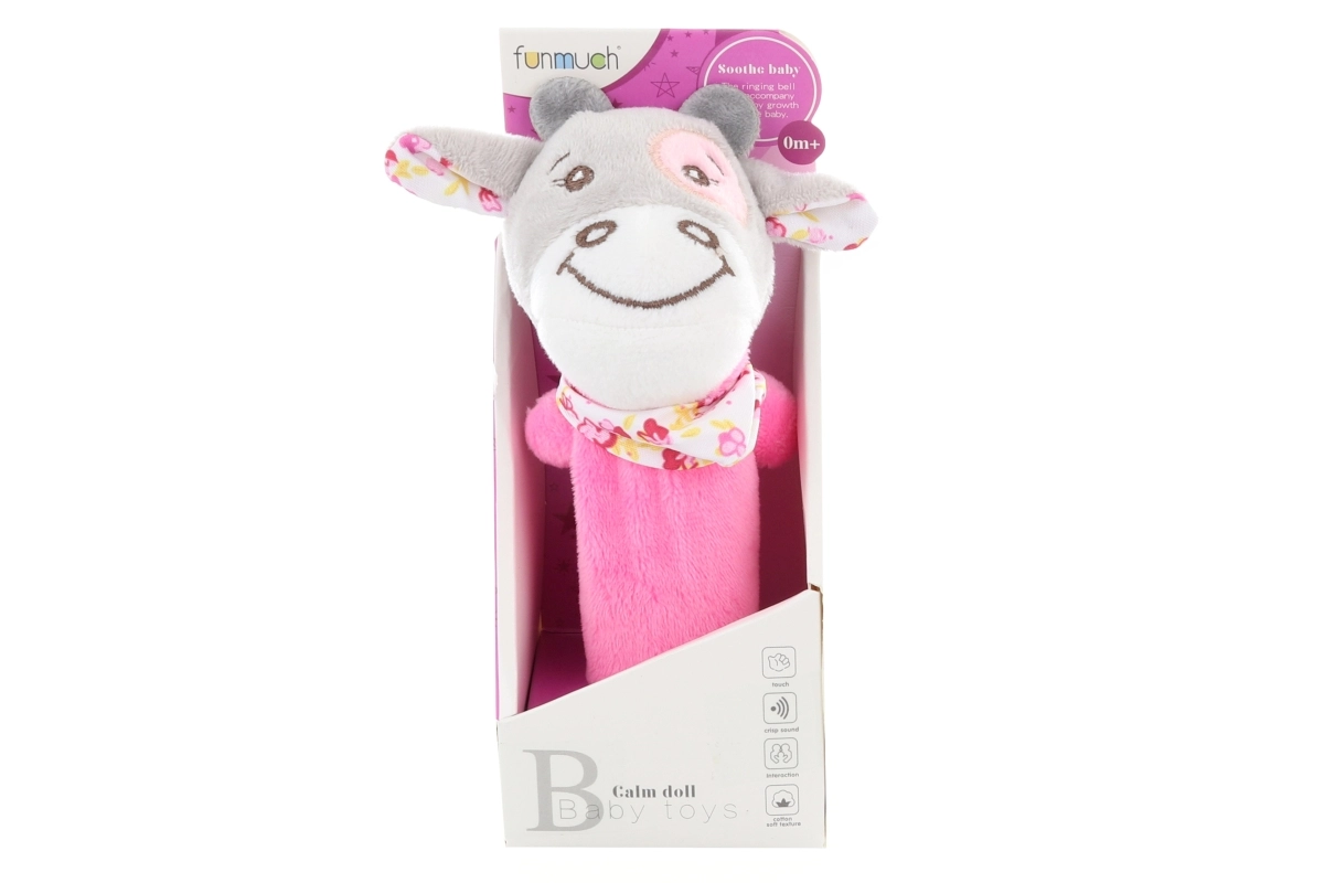Questo sonaglio squeak a forma di mucca rosa è morbido al tatto ed è progettato per i più piccoli. Quando si preme emette un delicato suono strillante che attira l’attenzione e favorisce lo sviluppo dell’udito. Grazie alle dimensioni compatte si impugna facilmente ed è ideale per allenare la motricità fine e la presa.