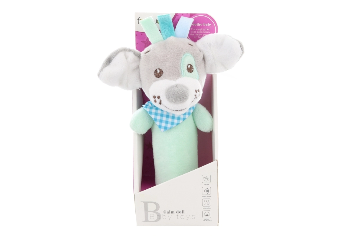 Il tenero sonaglino in peluche a forma di cagnolino verde farà felice ogni bebè fin da 0+. La struttura leggera, il materiale morbido e vellutato e l’effetto squeak favoriscono lo sviluppo dei sensi e della motricità, coinvolgendo il bimbo sia durante il gioco sia nei momenti di calma.