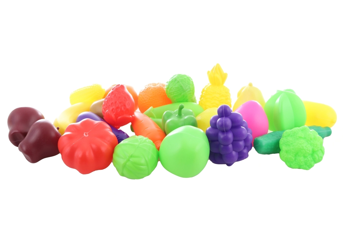 La plastica leggera e durevole resiste al gioco quotidiano. I bambini riconoscono facilmente i principali tipi di alimenti e i colori.