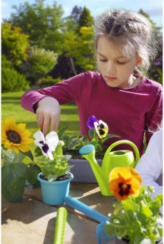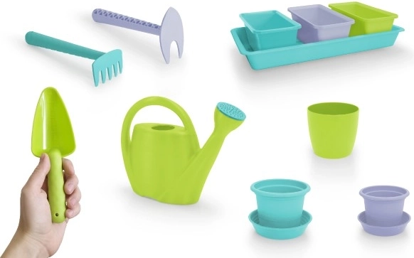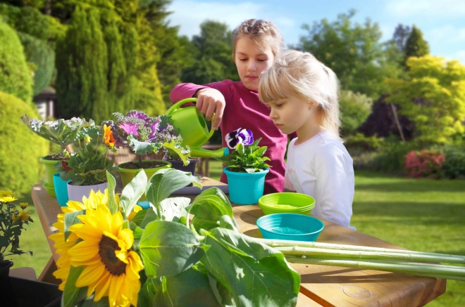 Con questo set, i bambini possono imparare le basi del giardinaggio e divertirsi all'aperto coltivando le proprie piantine nei vasi colorati.