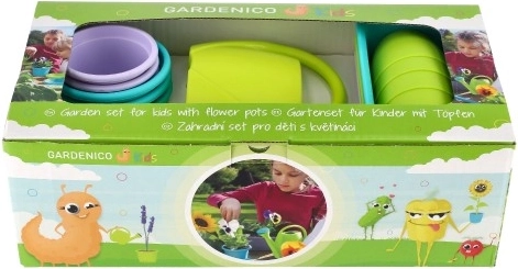 Il grande set da giardino Gardenico Kids è ideale per i piccoli giardinieri. Contiene tutto il necessario per coltivare erbe aromatiche e altre piante, inclusi utensili per bambini, set di mini fioriere, vasi da fiori e sottovasi.