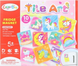 Scopri il divertente set per bambini per la creazione di magneti per frigorifero. La confezione include 10 piastrelle in porcellana, 10 magneti, 6 colori e un pennello – tutto ciò di cui i bambini dai 5 anni in su hanno bisogno per creare le proprie decorazioni originali.
