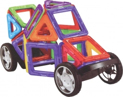 Il set include forme magnetiche colorate e ruote, che permettono la realizzazione di costruzioni diverse, migliorando l'immaginazione spaziale.