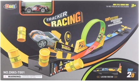 Pista di lancio con automobilina in metallo. Lunghezza della pista circa 125 cm. Dimensioni della confezione circa 38 x 22 x 6 cm. Età 3+.
