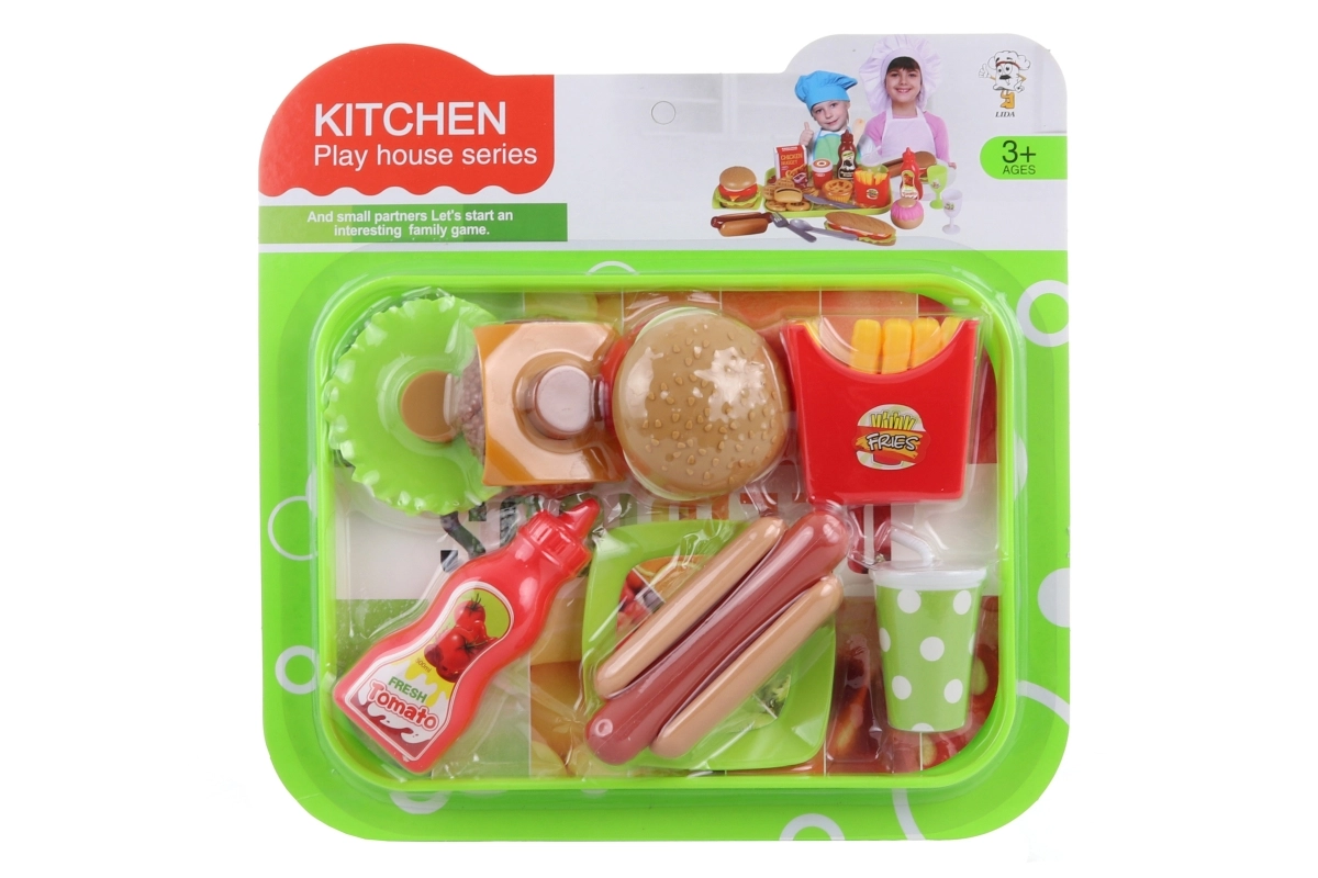 Divertente set di fast food per piccoli chef con accessori realistici: hamburger componibile, patatine in bicchierino, hot dog, bevanda, ketchup e vassoio. Perfetto per giochi di ruolo, per sviluppare motricità fine e creatività. Adatto dai 3 anni.