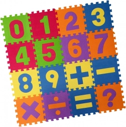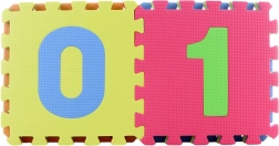 Tappetino in gommapiuma con diverse forme e numeri colorati al centro, che possono essere rimossi e reinseriti come un puzzle. Un ottimo accessorio per i giochi dei vostri bambini e allo stesso tempo serve come protezione dal freddo del pavimento. Dimensioni di una singola tessera circa 30 x 30 x 0,9 cm. Dimensioni della confezione circa 58 x 30 x 6,5 cm. Età 3+