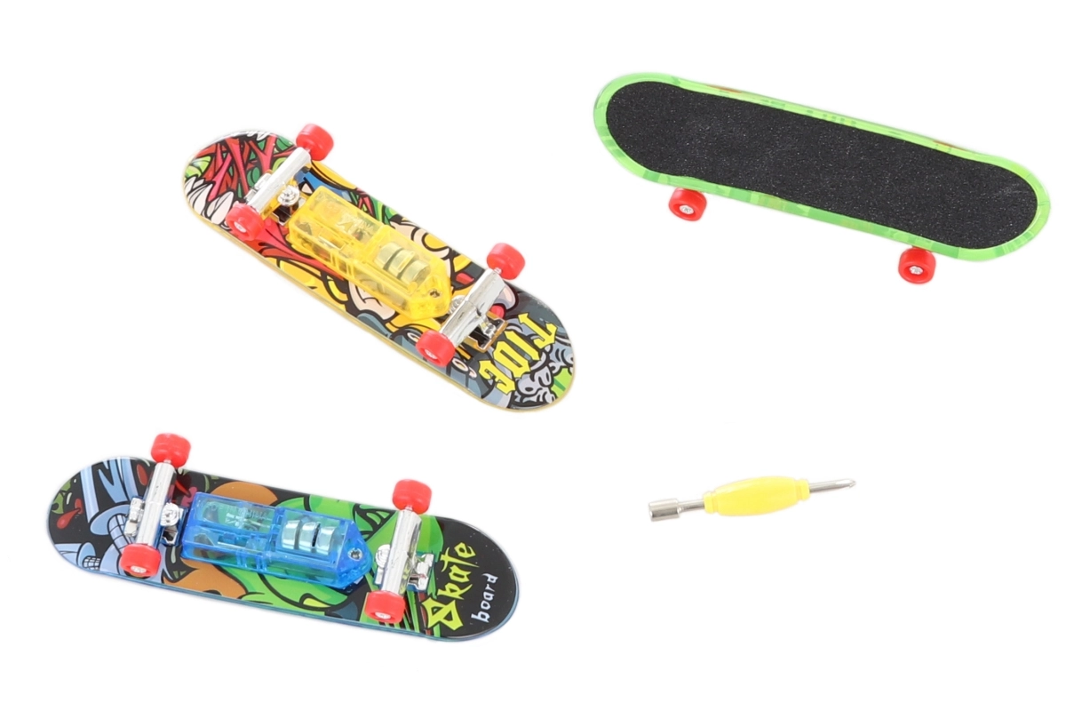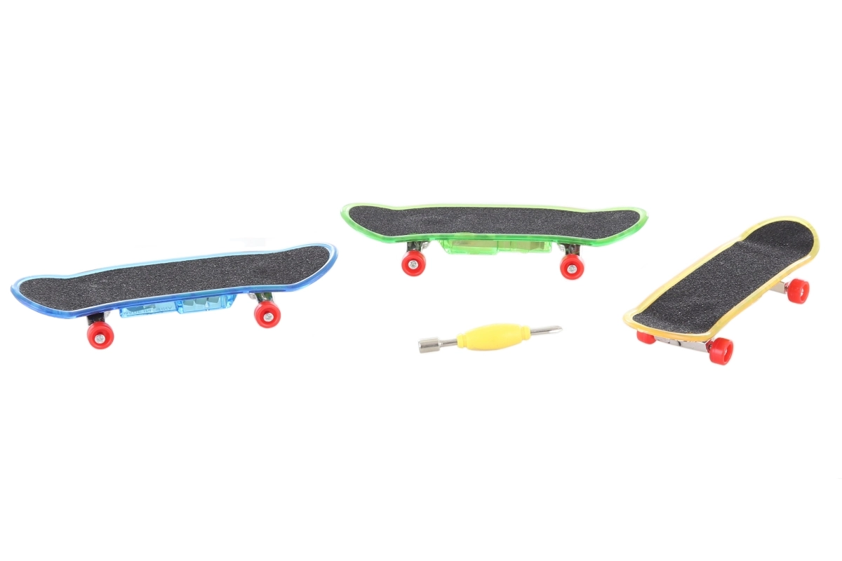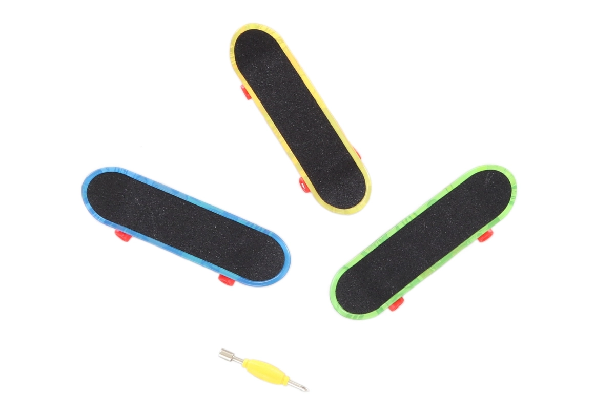 Nella confezione trovi 3 mini skateboard e un utensile per l’avvitatura. Le batterie AG13 sono incluse, così puoi iniziare subito.