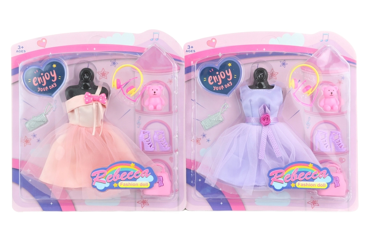 - Vestito per bambola, scarpette, 2× borsetta, orsetto, cuffie