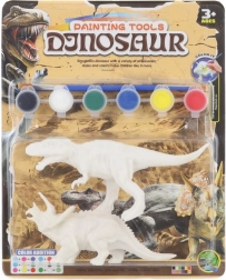 - 2 figure di dinosauro in plastica, 6 colori, pennello
