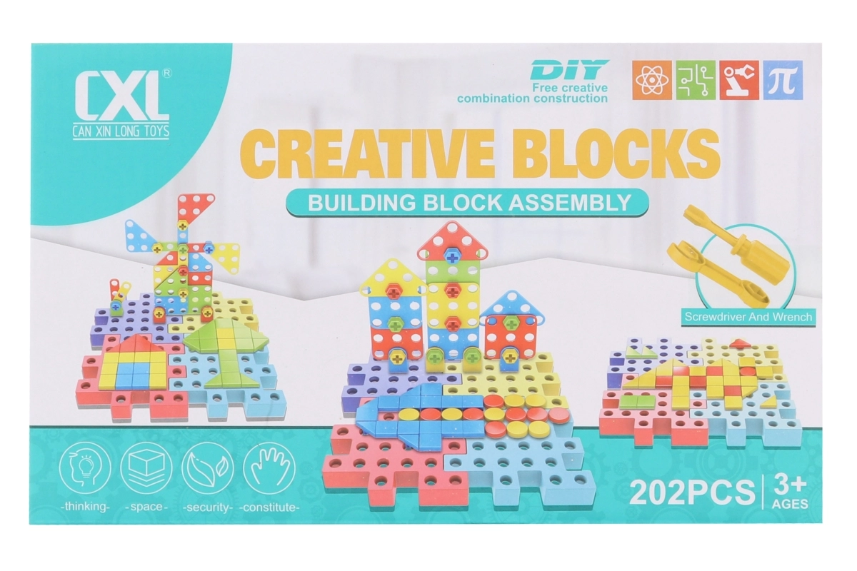 Set di costruzione universale avvitabile per bambini dai 3 anni che sviluppa la motricità fine, la creatività e il pensiero logico. La confezione contiene 202 pezzi in plastica, con cui i bambini possono costruire città, veicoli e modelli originali personalizzati. L’avvitamento semplice è divertente e sicuro e favorisce un gioco creativo senza limiti.