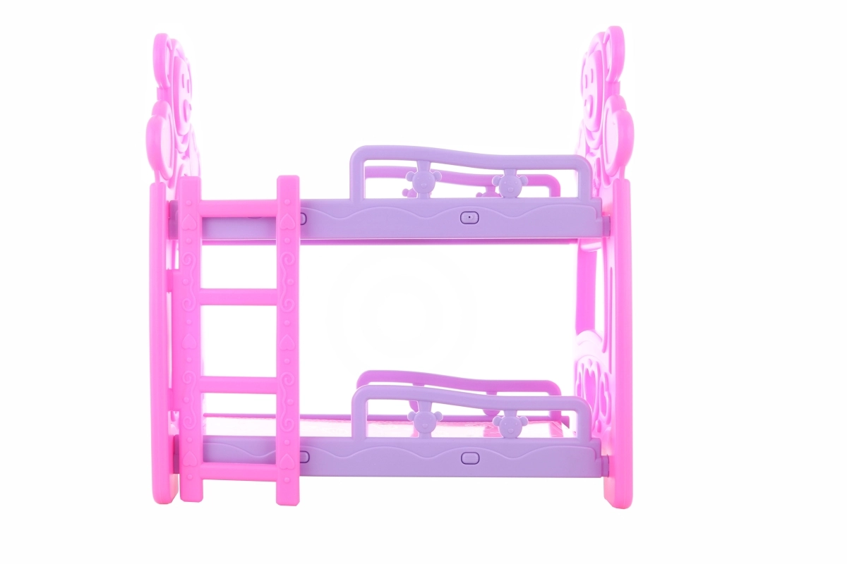 Questo letto a castello in plastica per bambole è un ottimo complemento per la cameretta dei bambini. Grazie alle dimensioni compatte si adatta alla maggior parte degli angoli gioco e offre spazio sufficiente per due bambole contemporaneamente. La struttura è leggera ma stabile, adatta al gioco quotidiano.