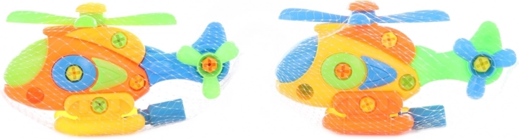 Elicottero avvitabile per bambini 19 cm in plastica resistente. Include cacciavite, confezionato in rete. Sviluppa motricità e pensiero logico. Età 3+.
