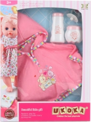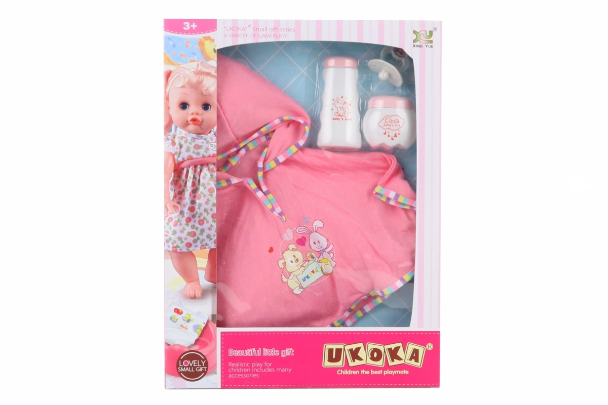 Questo set universale di accessori per una bambola di 45 cm è un ottimo complemento a qualsiasi collezione per bambini. Grazie al poncho, al ciuccio e alle boccette, i bambini possono giocare a prendersi cura del bebè e sviluppare la loro immaginazione.