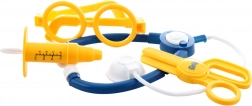 Il fonendoscopio, la siringa, gli occhiali e le forbici sono in plastica leggera con bordi arrotondati. Stimolano la fantasia e introducono i bambini alla funzione degli strumenti di base.