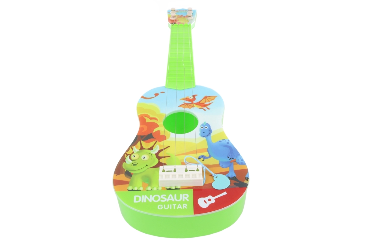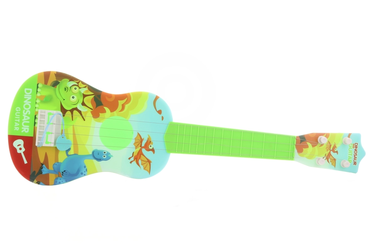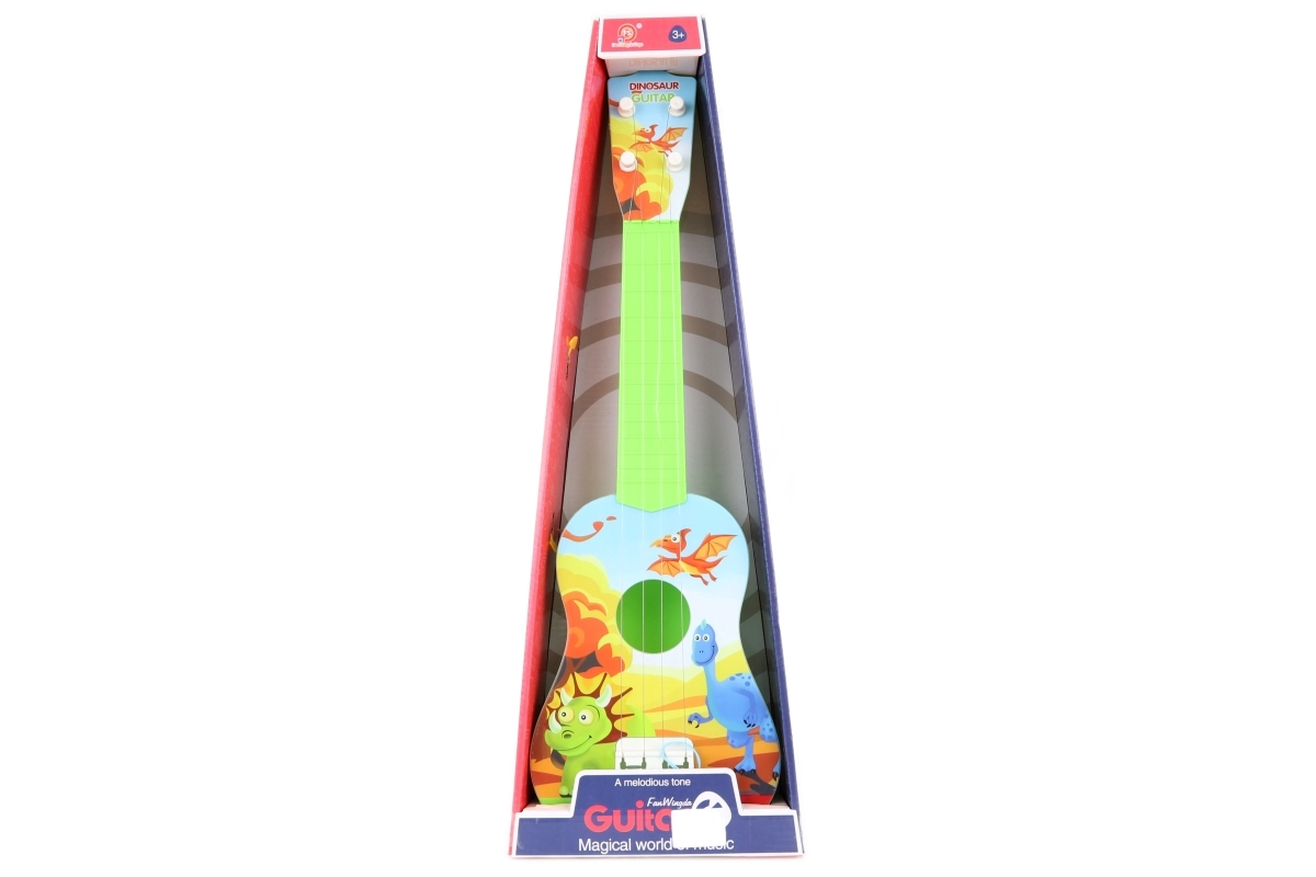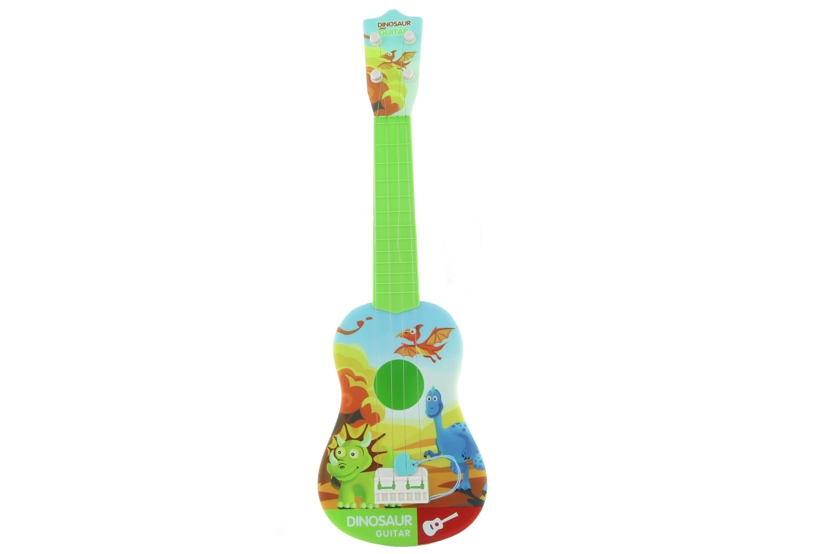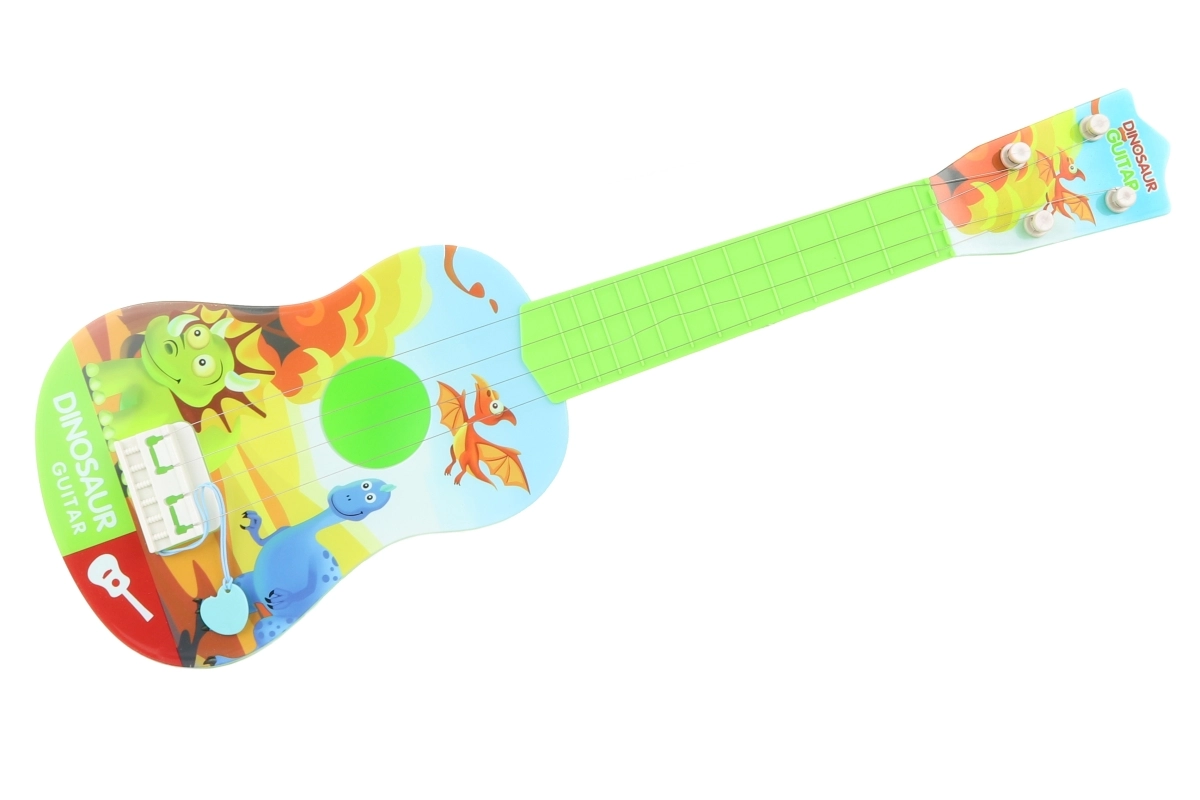 Questa chitarra per bambini con simpatici dinosauri è un ottimo primo passo nel mondo della musica. Grazie alle dimensioni compatte di circa 53 × 17 cm si impugna bene, si trasporta facilmente ed è ideale per suonare a casa o in viaggio. La plastica leggera e resistente e la realizzazione sicura sono perfette per le piccole mani e i principianti.