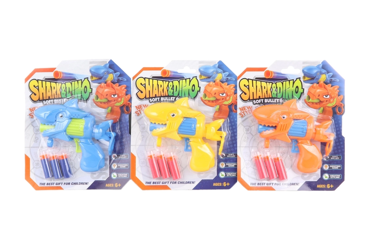 Divertente pistola di plastica a forma di squalo per giochi d’azione in casa e all’aperto. La confezione include 3 dardi in spugna con ventosa per un gioco sicuro. Ideale per bambini dai 6 anni. Leggera, sicura e facile da usare per un divertimento immediato.