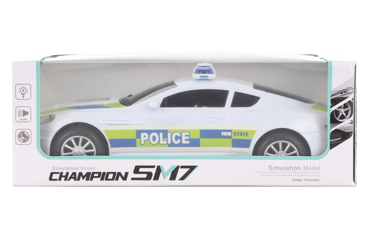 Scopri l’auto della polizia ricca di azione che garantisce tanto divertimento. Grazie al meccanismo a urto, supera gli ostacoli: al contatto cambia direzione e continua la corsa. Gli effetti luminosi e sonori aggiungono realismo al gioco e coinvolgono i bambini nella scena.