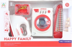 Scoprite il divertente set di elettrodomestici per bambini Happy Family, che avvicina i piccoli al mondo delle faccende domestiche attraverso il gioco. Il set include lavatrice, ferro da stiro, asse da stiro e cesto per il bucato. Elementi realistici, luci e suoni favoriscono lo sviluppo dell'immaginazione e del gioco di ruolo. Ideale per bambini a partire da 3 anni.