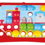 La robusta realizzazione in plastica garantisce resistenza e lunga durata. I bambini possono inserire i pioli più volte e creare i propri motivi, allenando coordinazione occhio–mano e concentrazione. La confezione pratica è adatta a casa e in viaggio.