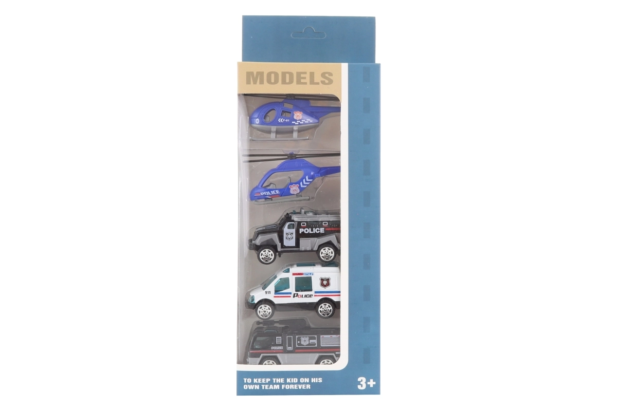 Scopri il divertimento d'azione con il set di auto della polizia in metallo, che include 2 elicotteri e 3 auto. Ideale per i piccoli fan dei servizi di soccorso a partire dai 3 anni. La confezione compatta dalle dimensioni di 10 × 27 × 3,5 cm è perfetta per i viaggi e come regalo.