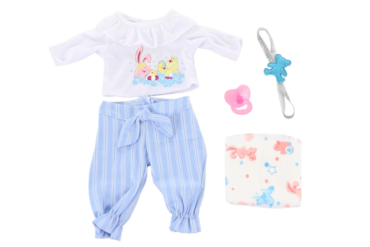 Regala alla tua bambola un nuovo outfit e ai bambini infinite possibilità di gioco. L’abbigliamento è progettato per bambole con altezza di circa 45 cm ed è adatto alla maggior parte dei modelli comuni di questa dimensione. Grazie al taglio studiato, vestire la bambola è semplice anche per i più piccoli.