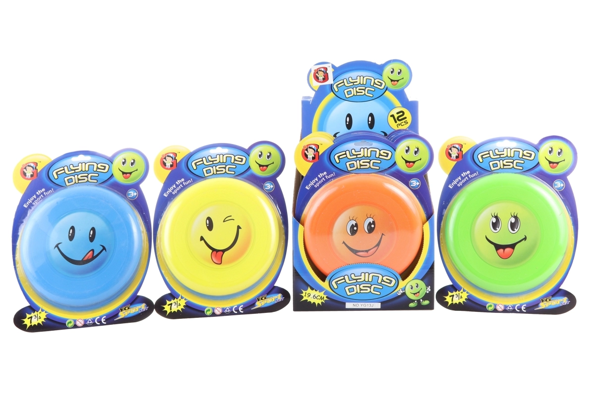 Goditi tanto divertimento con il colorato disco volante dal motivo allegro della faccina sorridente. Grazie al diametro compatto di circa 19 cm è facile da impugnare anche per i più piccoli e si lancia e si prende con facilità. Perfetto per momenti in famiglia all’aria aperta e favorisce il movimento sano.