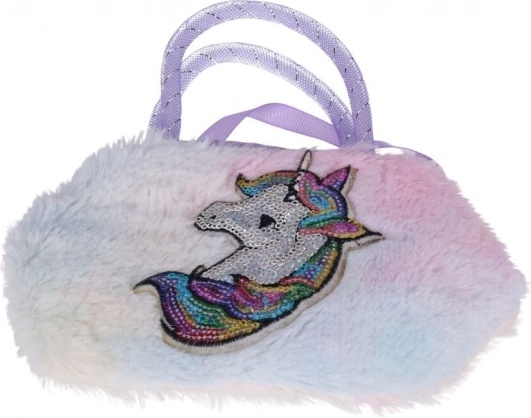 Borsa in peluche con tema magico dell'unicorno, che incanterà ogni piccola principessa.