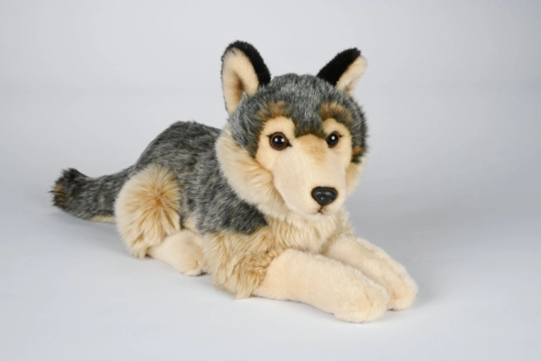 Adorabile lupo di peluche in posizione sdraiata, che delizierà gli amanti degli animali piccoli e grandi. Il suo materiale morbido e i dettagli realistici lo rendono un compagno perfetto per le gioie quotidiane.