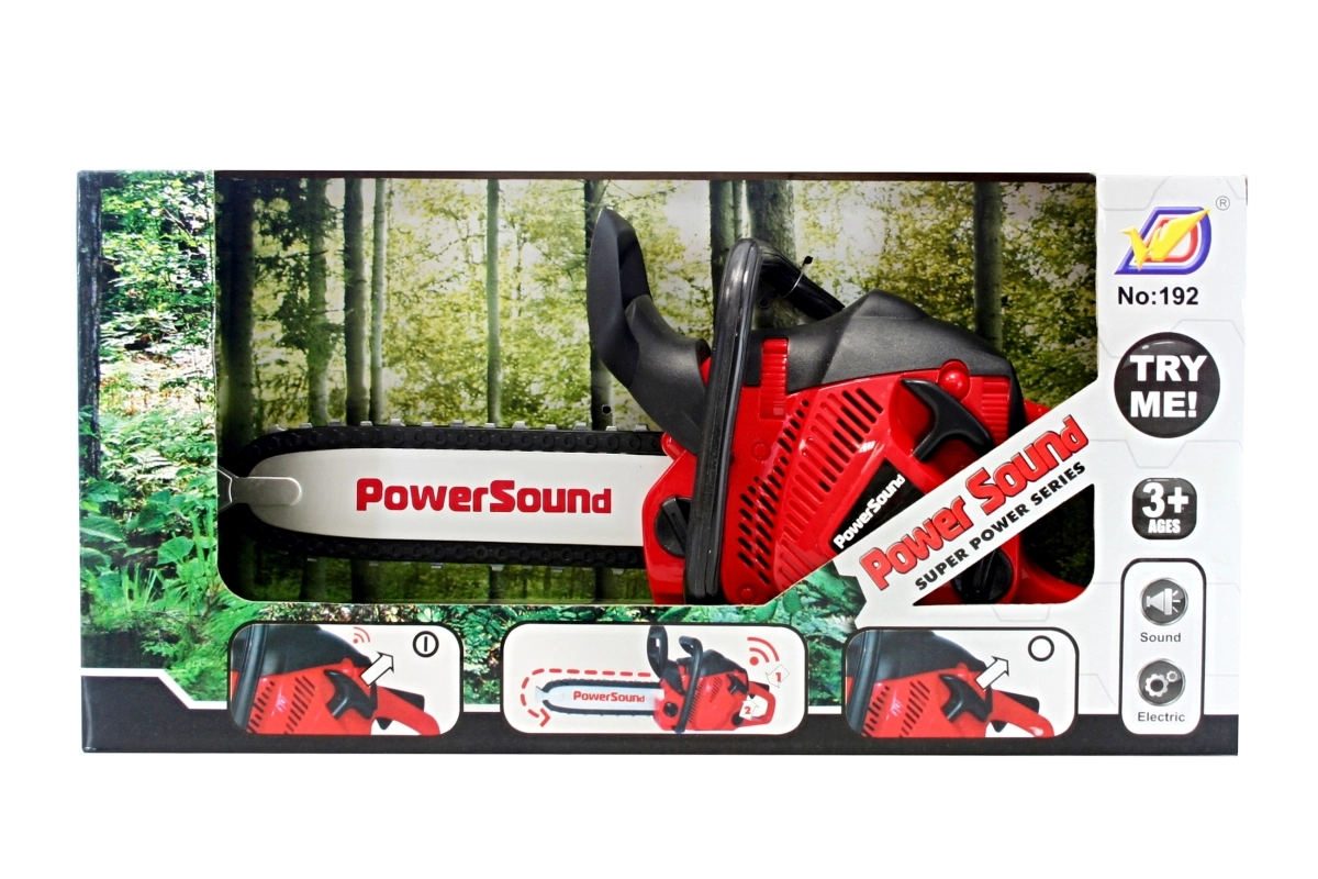 Realistica sega a catena motorizzata per bambini a batteria per piccoli boscaioli, offre divertimento e un sicuro primo approccio agli attrezzi degli adulti. Dispone di due modalità di funzionamento con suoni di avviamento, funzionamento del motore e catena in movimento. Dimensioni compatte circa 35 × 13 cm, alimentazione con 3× batterie AA, consigliata dai 3 anni.