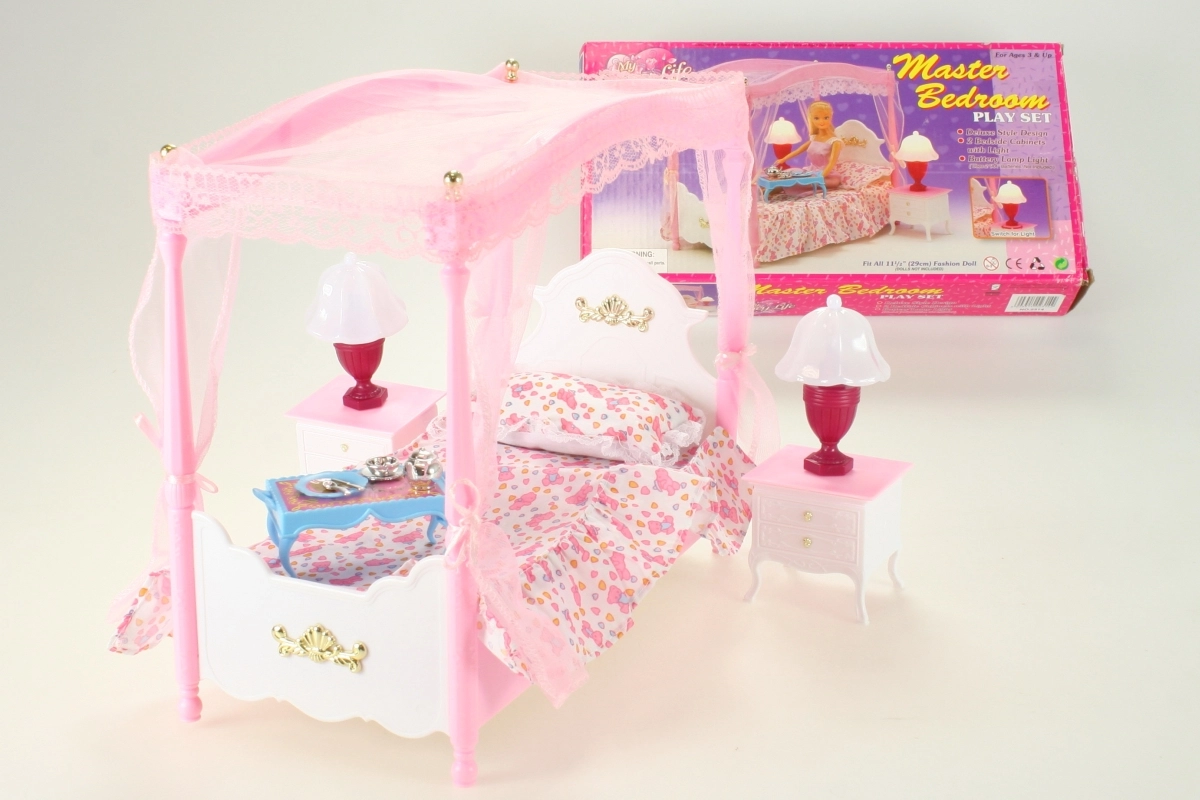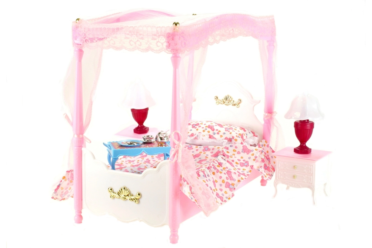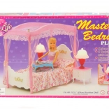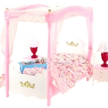 Questo letto a baldacchino curato nei dettagli trasforma la cameretta delle bambole in un accogliente regno. Grazie ai ricchi accessori e alle lampadine funzionanti, i bambini potranno vivere tante scene realistiche e divertirsi a lungo. La struttura in plastica di qualità garantisce resistenza e facile manutenzione.