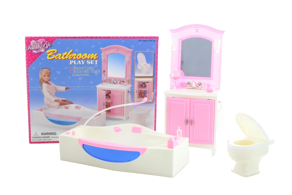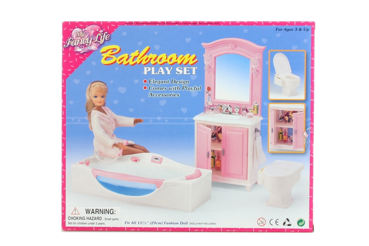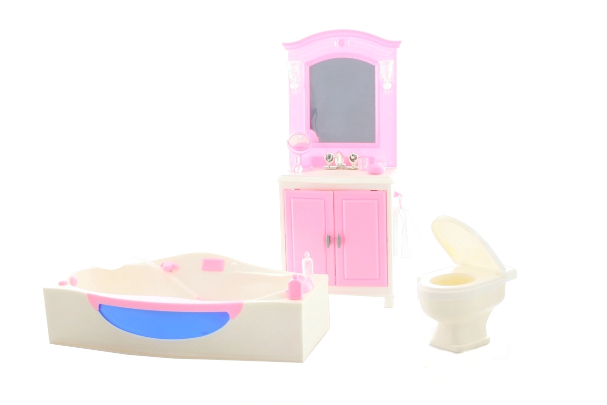Il contenuto della confezione include il tavolino toilette con lavabo, la vasca e il WC, nonché piccoli accessori che ricreano l’atmosfera di un vero bagno. La realizzazione in plastica garantisce una facile manutenzione e una lunga durata nell’uso quotidiano.