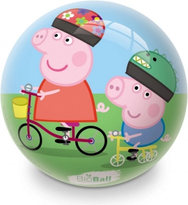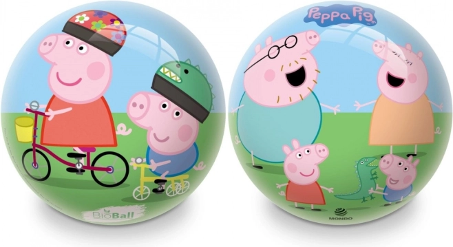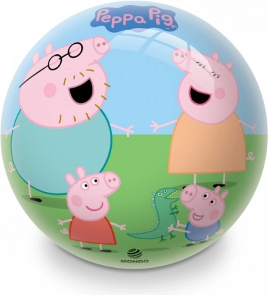La palla è decorata con illustrazioni colorate del cartone Peppa Pig, che portano gioia e divertimento.