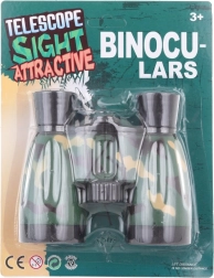 Binocolo mimetico in plastica, dimensioni circa 13,5 x 12 x 5 cm. Dimensioni della confezione circa 17 x 22 x 5,5 cm. Età 3+.