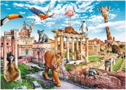 Scoprite Roma come non l'avete mai vista: con tigri, giraffe e fenicotteri tra i monumenti antichi. Il puzzle Trefl Funny Cities – Roma selvaggia offre un'illustrazione colorata e spiritosa che conquisterà adolescenti e adulti e trasformerà il tempo libero in un'esperienza creativa e rilassante.