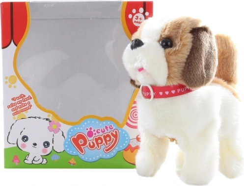 Dolce cagnolino di peluche che si muove e abbaia da solo. Dimensioni circa 14 × 16 cm, comando semplice tramite interruttore e funzionamento con 2× batterie AA. Splendido giocattolo interattivo per bambini dai 3 anni.