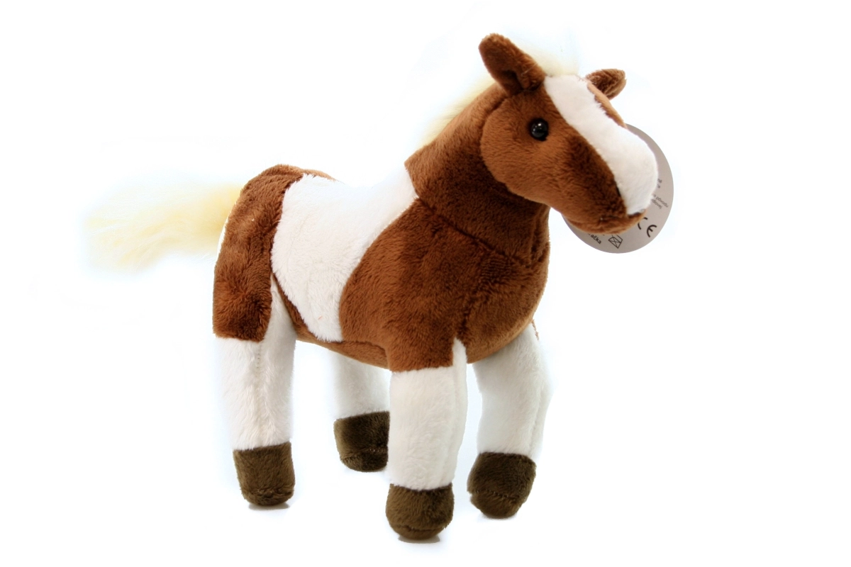Questo adorabile cavallo di peluche marrone e bianco con motivo pezzato e criniera bianca farà felici piccoli e grandi amanti degli animali. È morbidissimo, in posizione eretta e adatto fin dalla nascita. Ideale per giocare e coccolare, un regalo perfetto per la cameretta. Morbida peluche, design in piedi, sicuro da 0+, dimensioni compatte 23 cm.