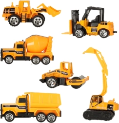 - Set completo di 6 mezzi – betoniera, carrello elevatore, escavatore, bulldozer, ribaltabile, rullo compattatore