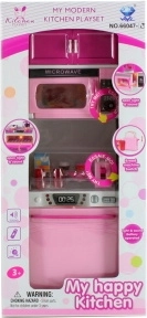 Porta i tuoi bambini nel mondo della fantasia con il set da gioco La mia cucina moderna, che comprende un forno a microonde e una lavastoviglie con funzioni interattive e stoviglie di plastica.