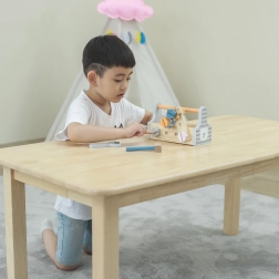 - Realizzato in tonalità pastello e grigio combinate con legno di faggio naturale.
