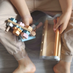 Aiuta i bambini a migliorare la motricità fine e la coordinazione occhio-mano giocando con viti e dadi.