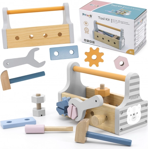 L'armadio in legno con attrezzi del marchio VIGA della serie Orso Polare porta ai bambini la gioia della creatività e dell'apprendimento di abilità pratiche. Questo set contiene tutto il necessario per ore di divertimento immaginativo e sviluppo della motricità fine.