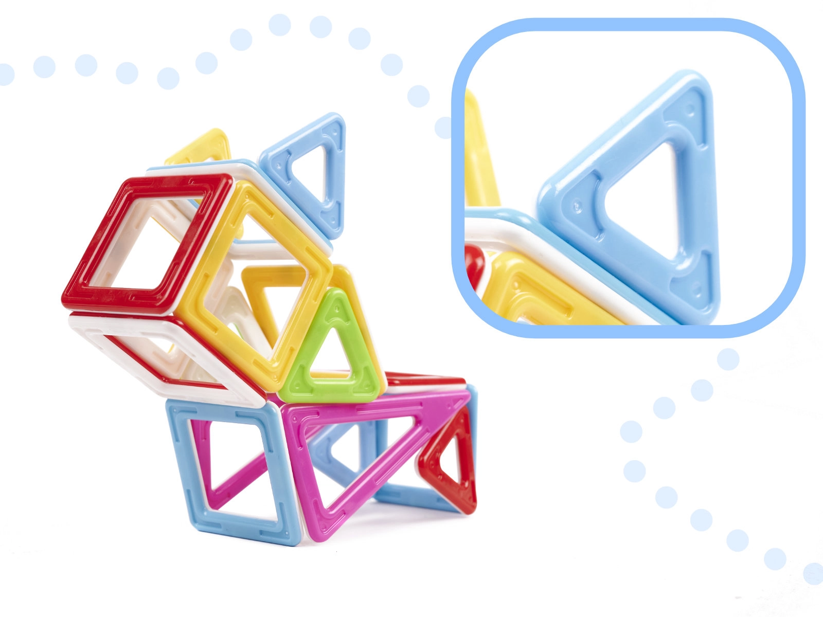 I blocchi di diverse forme aiuteranno a costruire strutture uniche. Puoi creare costruzioni 3D o forme piatte. Decidi tu cosa vuoi costruire. Divertimento assicurato! I magneti potenti facilitano la costruzione di edifici unici. I blocchi sono un ottimo strumento per lo sviluppo e il divertimento creativo. Un giocattolo creativo, senza tempo per la noia. Stimola l'immaginazione in modo eccellente, promuove il pensiero creativo e non convenzionale e sviluppa abilità manuali nei bambini più piccoli. Inoltre, i blocchi colorati saranno un ottimo aiuto per imparare i nomi dei colori o contare. Raccogli tutte e tre le serie e costruisci un fantastico robot. Il set contiene 38 elementi, tra cui troverai: